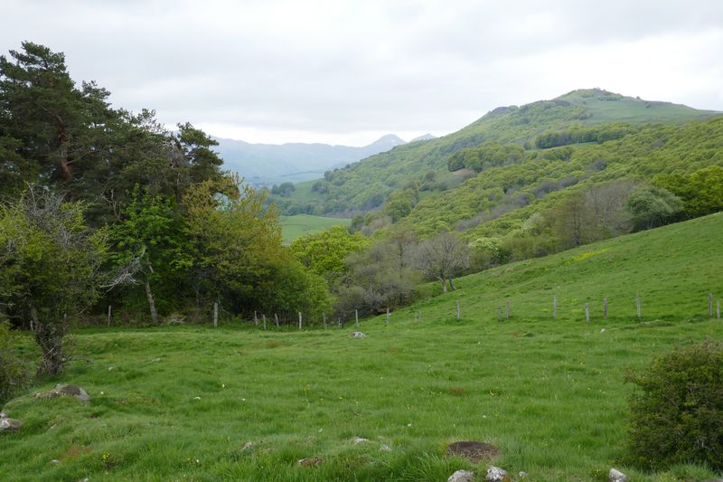 - Premier jour : après le trajet sur la route, nous faisons étape à Cheylade, point de départ de notre rando du jour. Le vert domine, le printemps un peu en retard ici, arrive à petits pas. Les fleurs abondent.