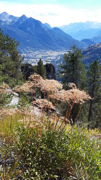8e jour.1er septembre. Refuge de Buffère- Col de Buffère- Col de Granon- Briançon. Etape finale vers le col de Buffère avec un superbe panorama sur le massif des Ecrins, dominants la vallée de la Guisane, contournement du Grand Aréa jusqu’au col de Granon. Les superbes crêtes de Peyrolles offrent une dernière vue panoramique sur les deux vallées avant une dernière descente à travers les mélèzes jusqu’à Briançon.